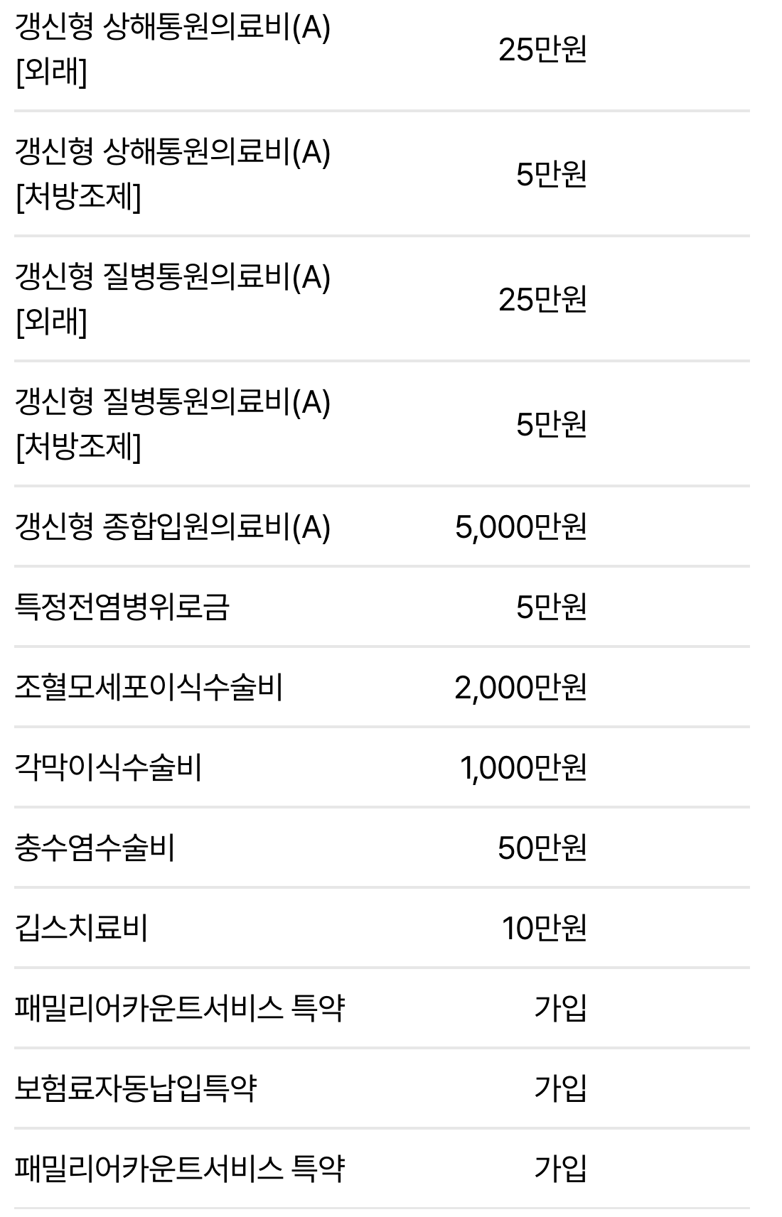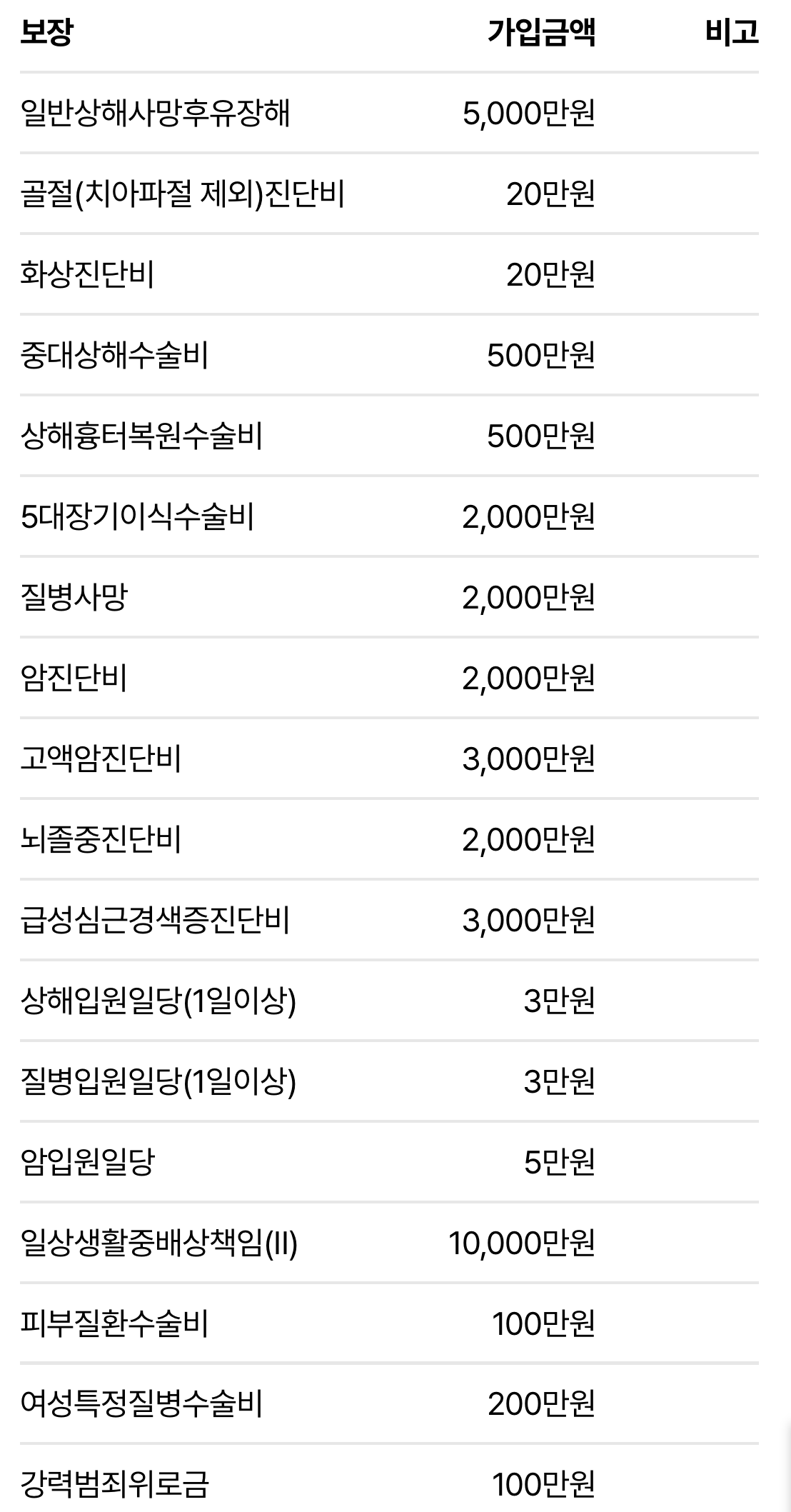 이 부분을 뇌혈관/허혈성/심혈관특정이라는 항목으로 초기질환에 대한 대비도 가능하도록 보완해주시는게 좋습니다.